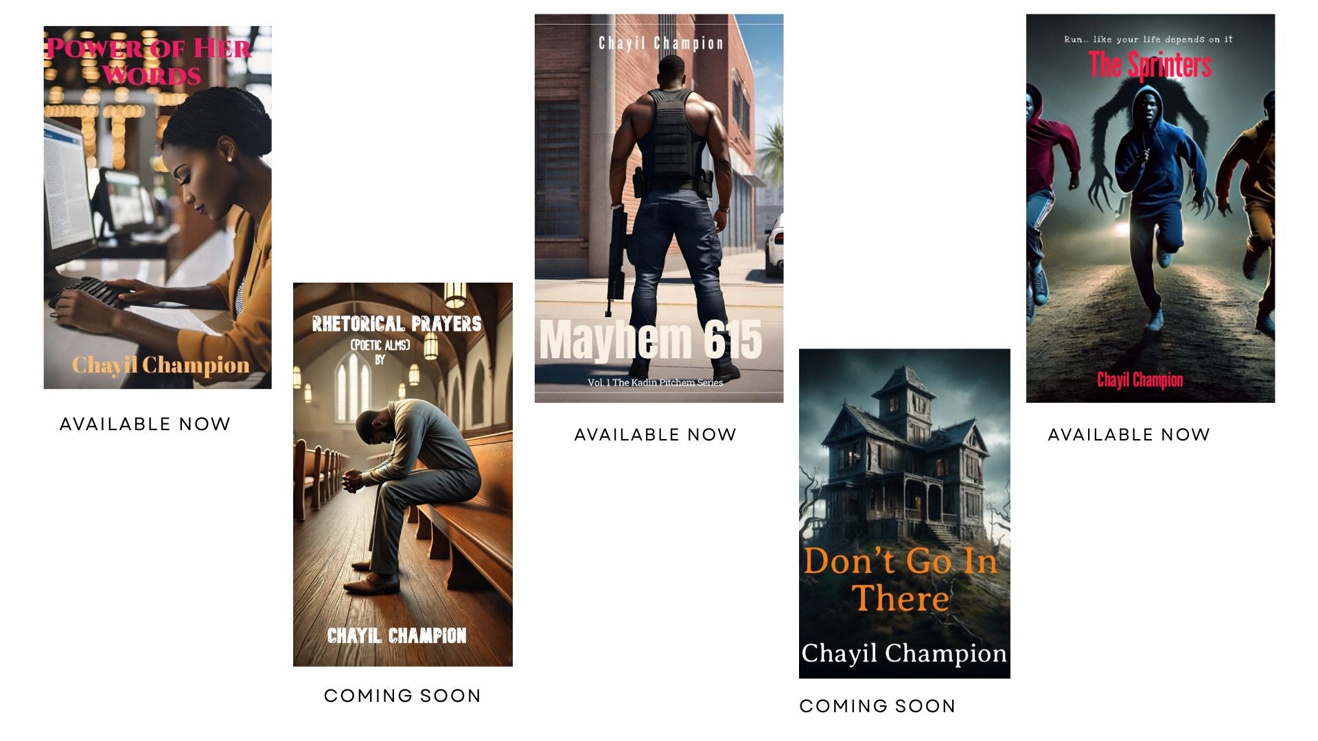These Champion Fiction originals are "digital novellas" or "short stories" you can only download here at ChampionFiction.com. Downloads are available in epub formats for Kindle and other eReader devices. PDF formats are also available. Start building your digital book library with a FREE download of Mayhem 615 and be sure to purchase the other ebook exclusives from Chayil Champion.